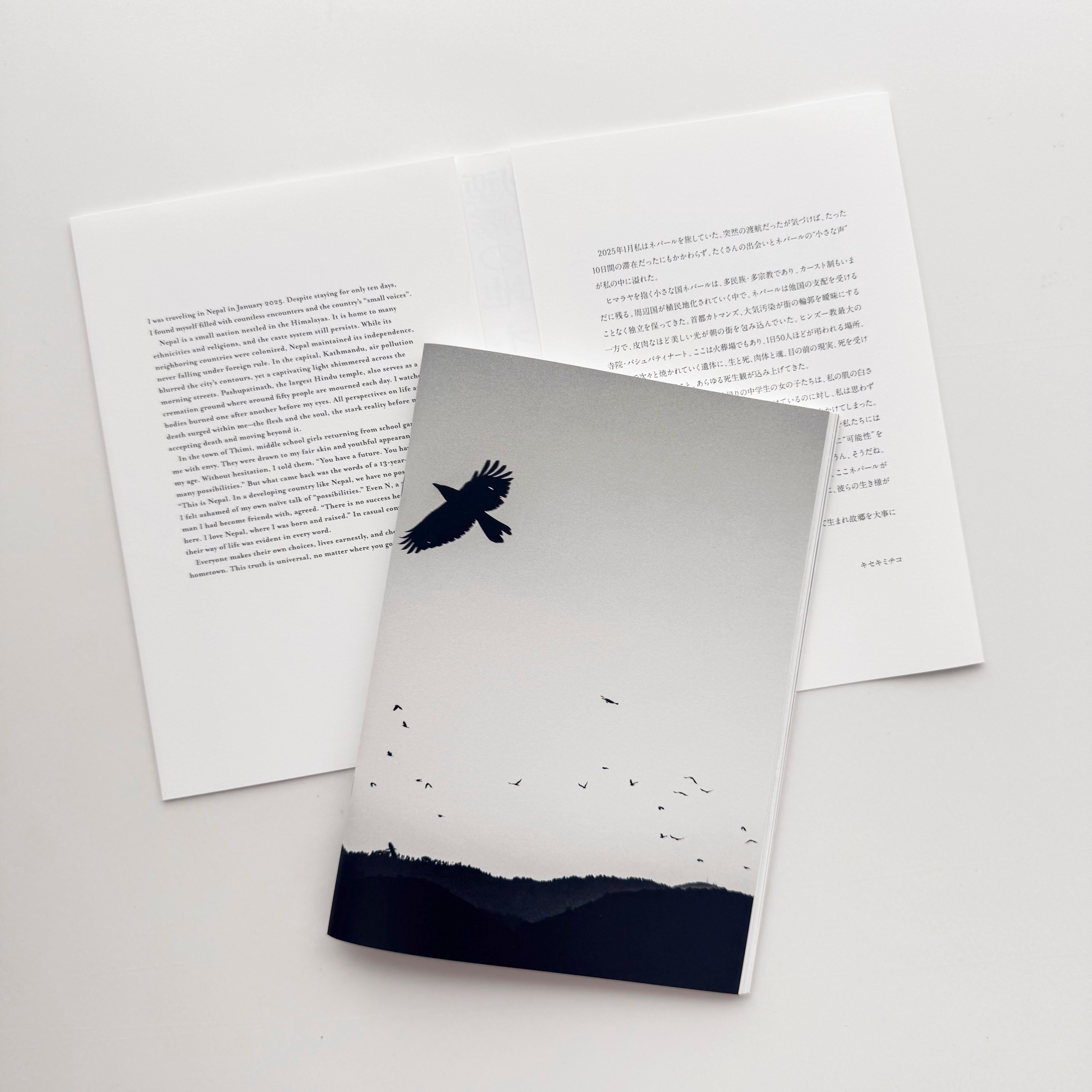 「2025年1月ネパールを旅していた。突然の渡航だったが気づけば、たったの10日間の滞在だったにもかかわらず、たくさんの出会いとネパールの”小さな声”が私の中に溢れた。ヒマラヤを抱く小さな国ネパールは、多民族・多宗教であり、カースト制もいまだに残る。周辺国が植民地化されていく中で、ネパールは他国の支配を受けることなく独立を保ってきた。首都カトマンズ、大気汚染が街の輪郭を曖昧にする一方で、皮肉なほど美しい光が朝の街を包み込んでいた。ヒンズー教最大の寺院・パシュパティナート。ここは火葬場でもあり、1日50人ほどが弔われる場所で、目の前で次々と焼かれていく遺体に、生と死、肉体と魂、目の前の現実、死を受け入れ、乗り越えていくこと、あらゆる死生観が込み上げてきた。」